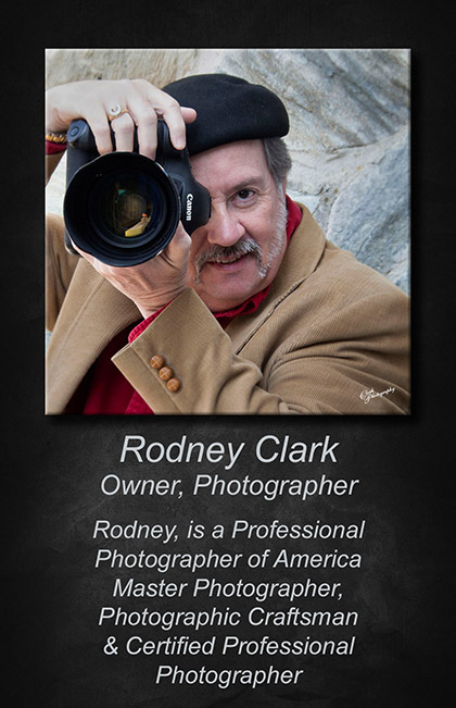 Rodney Clark is Professional Photographer of America, Award Winning Master Photographer, Photographic Craftsman and Certified Professional Photographer with over 40 years in Professional Photography.
